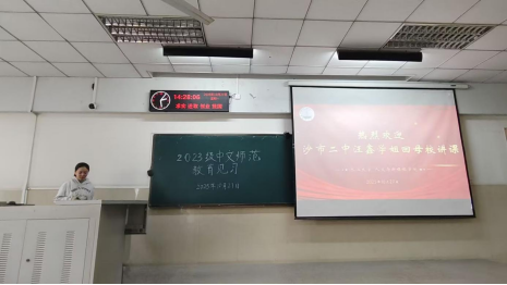 (通讯员:罗望枝)为助力2023级中文师范生完成从“课桌”到“讲台”的角色转换,suncitygroup太阳集团于2025年10月27日在12教102教室举办了首场教育见习讲座。本次活动特邀沙市二中优秀教师汪鑫老师作题为《从课桌到讲台:见习“心”攻略》的分享,学院周霜老师主持,23级中文师范专业全体学生参与。