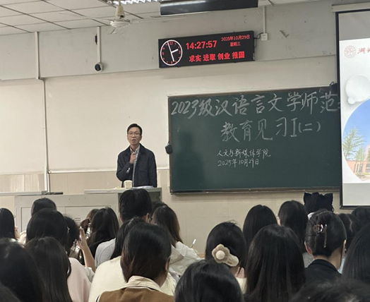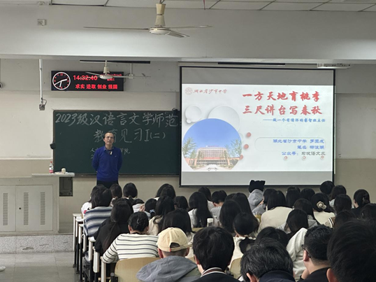(通讯员:刘心语、李远淑)为提升师范生对班主任工作的认知,夯实未来职业基础,suncitygroup太阳集团于2025年10月29日在12教102教室举办了第二次教育见习讲座。本次讲座特邀沙市中学优秀教师罗圆成老师主讲,主题为《一方天地育桃李,三尺讲台写春秋——做一个有情怀的睿智班主任》。讲座由章芳老师主持,副院长柯艺老师出席,23级中文师范专业全体学生参与。