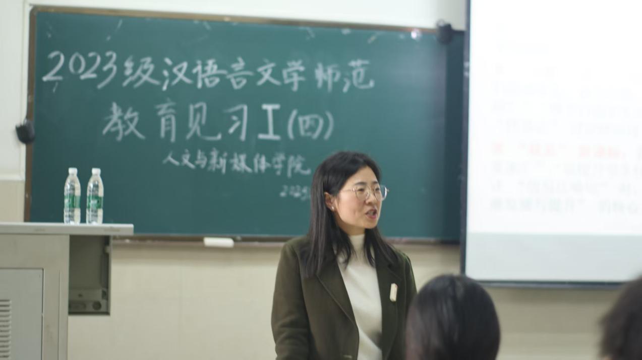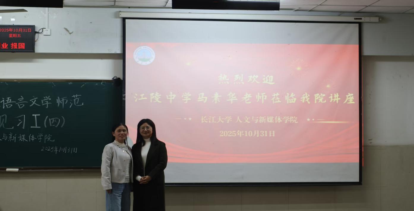 (通讯员彭迪)为夯实师范生教育教学基本功,提升教学技能,suncitygroup太阳集团于2025年10月31日下午在东校区12教102举行了2023级中文师范专业教育见习第四次讲座。本次活动特邀湖北省江陵中学高级教师马素华,作题为《从“教课文”到“育素养”:新课标背景下〈劝学〉的深度备课策略》的专题分享。讲座由章芳老师主持,张丽老师、周霜老师及2023级全体中文师范生参加。