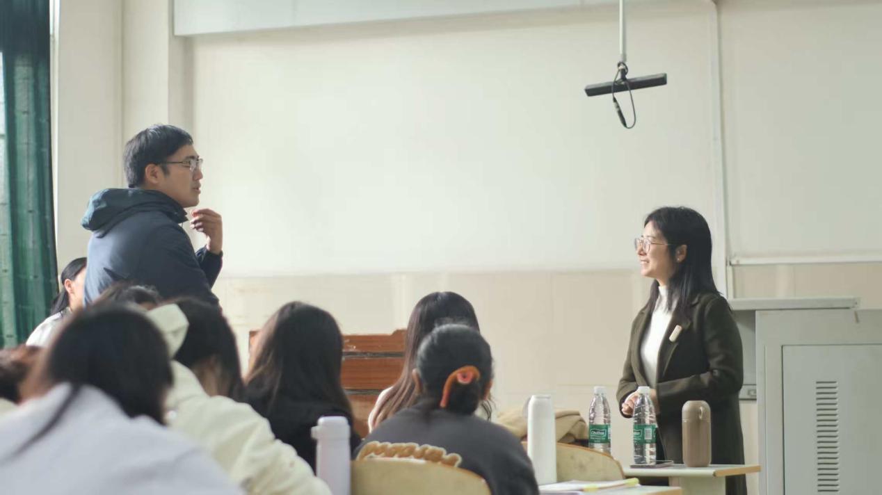 在交流环节,同学们围绕备课策略的实际应用、课堂氛围调控、作文教学等话题踊跃提问。马老师结合自身经验指出,教师应做好充分预案,灵活掌控课堂节奏,并通过“脱敏教学”等方法激发学生的写作兴趣,实现“乐写”“勤改”。