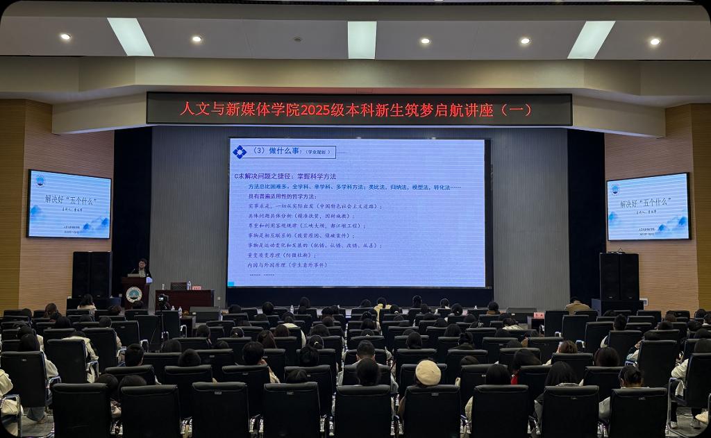 (通讯员 王庆雨 王新宇)为帮助大一新生明确成长方向、科学规划大学生活,破解成长中的迷茫与焦虑,11月2日晚,学院在西校区1058学术报告厅特邀雷体翠老师,开展以“解决好‘五个什么’”为主题的新生筑梦启航讲座。活动由学院党委副书记冯翠丽主持,全体大一新生、班主任和辅导员共同参与。