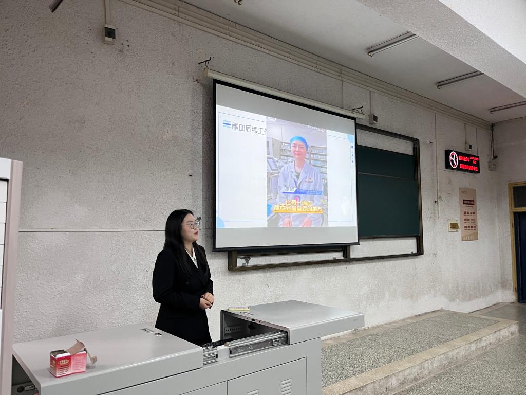 活动邀请学院无偿献血宣讲员张馨心同学作主题宣讲《生命的颜色》。张馨心围绕无偿献血的意义、流程、注意事项以及相关法律法规,结合真实案例与专业知识,为在场师生带来了一场内容翔实、情感真挚的分享。她以“生命的颜色”为喻,生动阐释了献血行为背后所承载的生命希望与社会温度,引导同学们理解无偿献血不仅是爱心奉献,更是一份沉甸甸的社会责任。