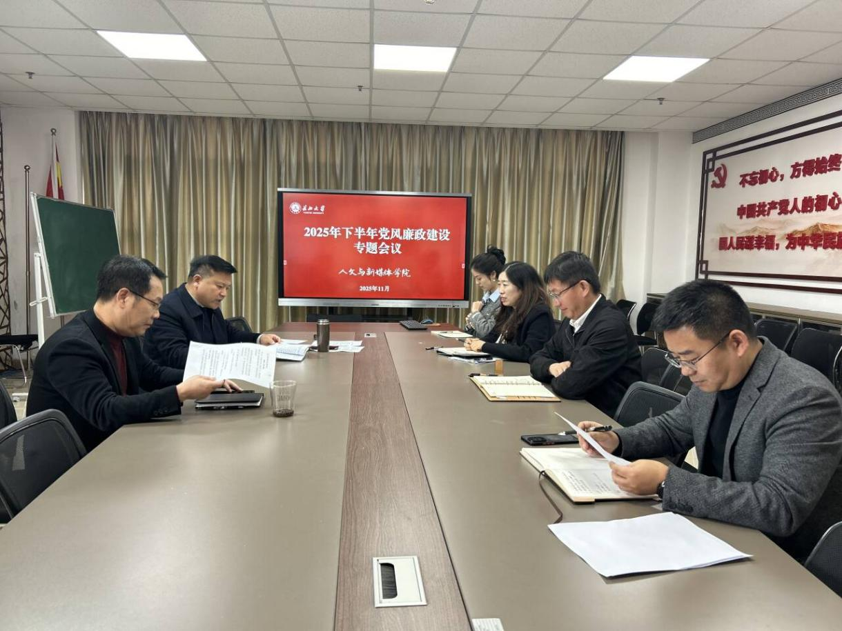 (通讯员 田华蓉)11月11日下午,为进一步加强学院党风廉政建设,筑牢拒腐防变的思想道德防线,营造风清气正的育人环境和政治生态,学院在文科楼705会议室召开党风廉政建设专题工作会议。学院全体班子成员参加会议,党委书记李波主持会议。